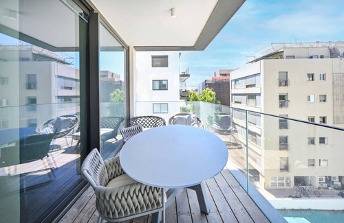 We absolutely love this beautiful brand-new apartment, featuring a balcony where you can enjoy the sea breeze. Plus, its prime location just one minute from the beach.