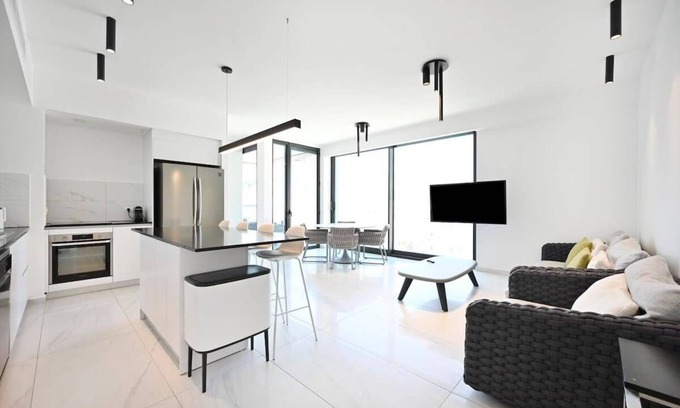 Welcome to Geula Getaway! This inviting 3-bedroom apartment is situated on the 4th floor and boasts a generous 98 sqm of space. It's equipped with an elevator for added convenience during your stay.