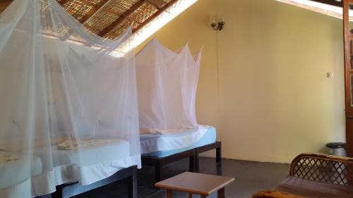 Featuring a beachfront, Sea Front Beach Huts is located just 164 feet from the Patnem Beach in Canacona. Free WiFi access is available in this tented camp. The accommodations will provide you with a balcony and a seating area. Featuring a shower, private bathroom also comes with free toiletries. You can enjoy sea view and garden view from the room. Extras include a safety deposit box, ironing facilities and a fan. At Sea Front Beach Huts you will find a 24-hour front desk, a garden and a bar. Other facilities offered at the property include a tour desk, shops (on site) and dry cleaning. An array of activities can be enjoyed on site or in the surroundings, including fishing and canoeing. The property offers free parking. It is 1.2 mi from the Palolem Beach and 4.3 mi from Agonda Beach. This tented camp is 22 mi from Madgaon Railway Station and 40 mi from Goa International Airport. The in-house restaurant serves regional, Indian, Chinese and continental delights. Room service is available for limited number of hours.