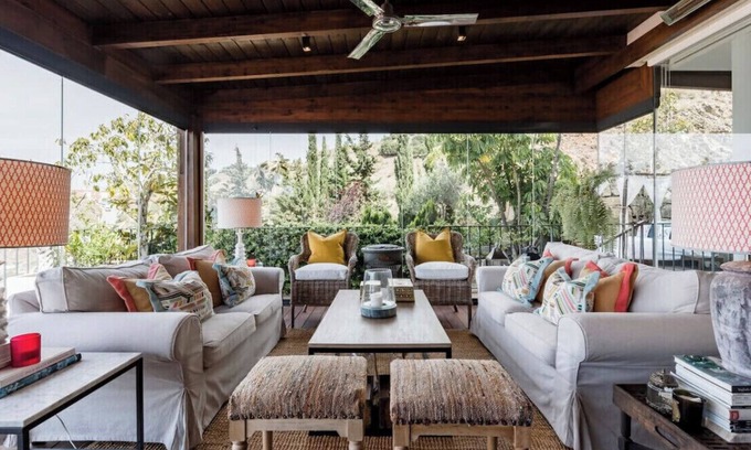 - living room with independent glass dinning room.