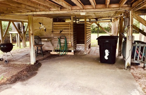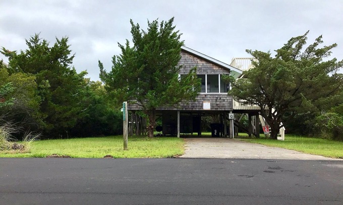 There are two bedrooms, a queen and a twin, both with a big closet and a dresser. Linens are provided. There is an outside shower with lights under the house. From the ocean side crow’s nest, enjoy the sunrise over the ocean and the sunset over the Pamlico Sound.