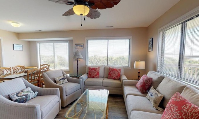 Sea-Nic View is located in Caswell Beach, just a 7-minute walk from Long Beach and 31 miles from USS North Carolina. The vacation home offers an outdoor swimming pool and a shared kitchen. The air-conditioned vacation home is composed of 3 separate bedrooms, a fully equipped kitchen with a dishwasher and kitchenware, and 4 bathrooms. A TV with cable channels and a Blu-ray player are offered. The accommodation is non-smoking. Wilmington International Airport is 37 miles from the property.