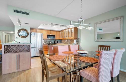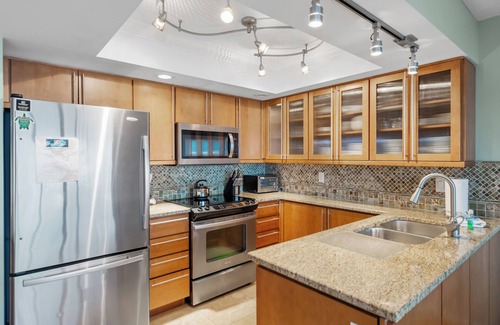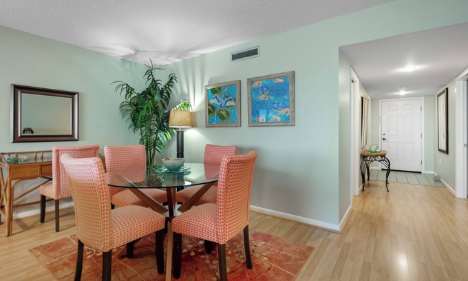 This spacious 2-bedroom, 2-bathroom condo comfortably accommodates up to 4 guests, featuring a luxurious master bedroom with a king-sized bed and a cozy guest bedroom with two twin beds. The ambiance is bright and airy, enhanced by the soothing sounds of the ocean just outside your door.