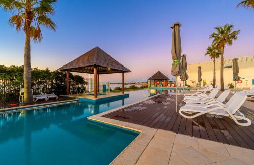 BathroomTowels, Shower, Toilet paper, Spa tub, Free toiletries, Conditioner, Shower cap, Bathtub or shower, Hairdryer, Body soap, Bathtub, Private bathroom, Shampoo, ToiletMedia & TechnologyRadio, DVD player, Flat-screen TV, TVGeneralAir conditioning, Fan, Carpeted, Ironing facilities, Heating, Private entrance, Smoke Alarm, Iron, Key card access, Trash cansKitchenDishwasher, Kitchenware, Washing machine, Microwave, Wine glasses, Electric kettle, Toaster, Dryer, Kitchen, Dining table, Refrigerator, Stovetop, Cleaning productsLiving AreaDining area, Sitting area, Desk, SofaOutdoorsOutdoor furniture, Patio, Outdoor dining areaViewSea view, ViewBedroomAlarm clock, Linens, Wardrobe or closet, Childrens' cribsAccessibilityEntire unit located on ground floorBuilding CharacteristicsSemi-detachedRoom AmenitiesClothes rack, Drying rack for clothing, Socket near the bedPool and SpaHeated pool, Infinity Pool, Pool with a view |