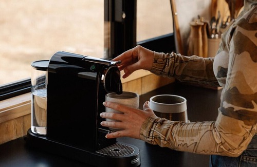 - Nespresso coffee machine, compostable pods & tea