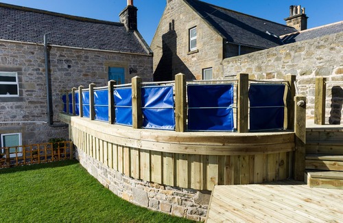 Traditional yet contemporary, cozy yet classy in one perfect property. The Millie has something new, quirky or amazing at every turn. A double jacuzzi bath with tile tv, huge wet-floor shower, a cozy sauna and. Roll top bath, a large walled garden, a lawn and an enormous split level decking with BBQ. Sea views, 2 minutes from beach. Burghead is steeped in history as it was formerly the Pictish capital of Europe. The Millie is built on the site of the ancient ramparts overlooking the harbor. Great for couples, great for families and great for groups of friends. Numerous golf courses nearby - Forres, Lossiemouth, Elgin, Spey Bay and 30mins from Castle Stuart. In the heart of the trail with the nearest working distillery only 2 miles away. Watch for the famous Moray Firth dolphins from 4 of the rooms.