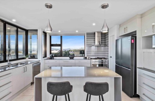 Perched atop the scenic hills of Long Beach, NSW, Seabreeze Sanctuary offers unparalleled 360-degree views of the ocean, rolling hills, and the iconic Tollgate Islands. Whether you’re gazing out over Batemans Bay and the mighty Clyde River by day or admiring the twinkling lights at night, this master-built, architect-designed home is the ultimate coastal escape. If you're lucky, you might even catch a glimpse of whales migrating along the South Coast during the season—a magical sight!