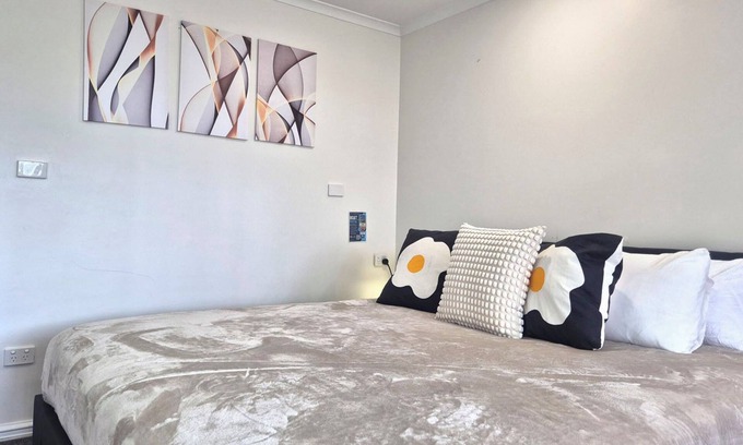 Your private ensuite bathroom features a relaxing rain-head shower, plush towels, and a wide mirror—perfect for getting ready before heading out. At the end of the day, sink into the queen-sized bed with quality linen, multiple pillow options, and set your perfect sleep temperature with the split-system air conditioning.