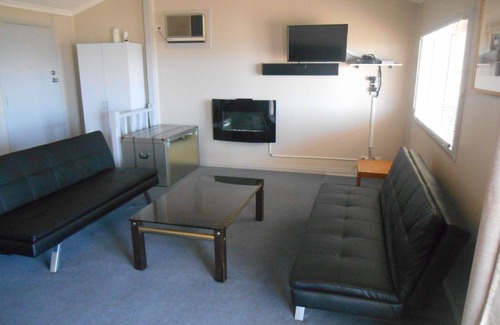Kitchen with microwave, lounge with TV, DVD, stereo, air-conditioning, wall mounted electric heater.