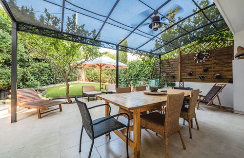 Stay connected with wireless internet access throughout the house, while the air conditioning keeps you comfortable in any season. The house features elegant wood and marble floors, creating a sophisticated atmosphere.