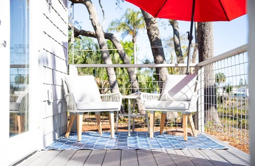Front Deck - Two chairs and a small table along with an umbrella make this spot perfect for morning coffee. You will love the full sun exposure!