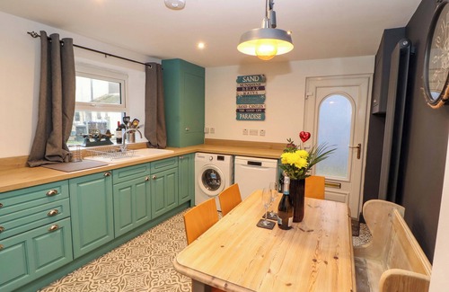 Amenities: Central heating. Gas oven and hob, microwave, fridge/freezer, washing machine, dishwasher. Smart TV, TV, WiFi, books, shuffleboard table and games. Fuel, power, and starter pack for woodburning stove inc. in rent. Bed linen and towels inc. in rent. Off-road parking available. Small, enclosed courtyard garden with picnic benches. Two well-behaved pets welcome. Sorry, no smoking. Shop and pub 0.2 miles, beach 0.1 miles
