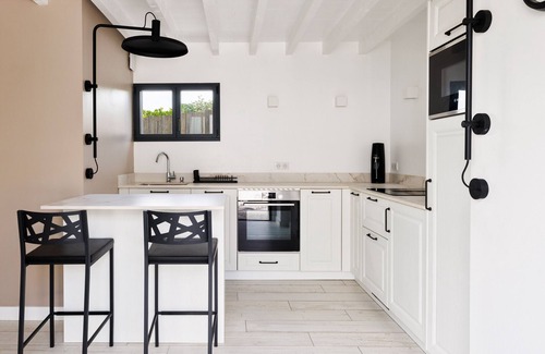 The annex features a fully-equipped open-plan kitchen, as well as a cosy lounge area.