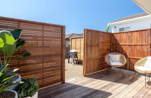 Whether you want to soak up the sun, go for a surf, take a romantic sunset stroll, or simply listen to the soothing waves, the beach is only moments away. Our apartment features large windows, stacker doors and a private balcony complete with outdoor dining and BBQ