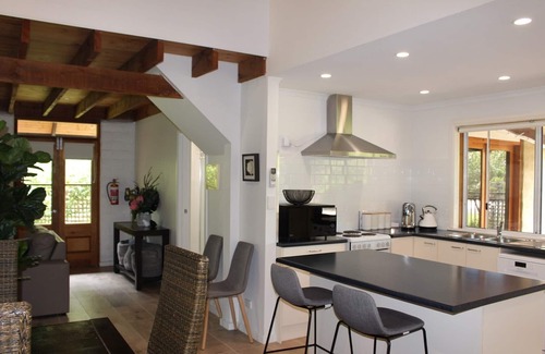 With modern country-cottage styling and a touch of luxe, the property is completely charming and blissfully romantic. Thoughtfully designed by the architect who personally hand-made every brick; the exposed beams, unique brickwork & soaring ceiling creates a relaxed feel. A gorgeous garden, lush shady lawns, hotel grade linen, beach towels, comfortable beds & complimentary Wifi completes the package.