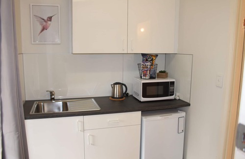 -Small Kitchenette with microwave, toaster, tea/coffee making and bar-size fridge