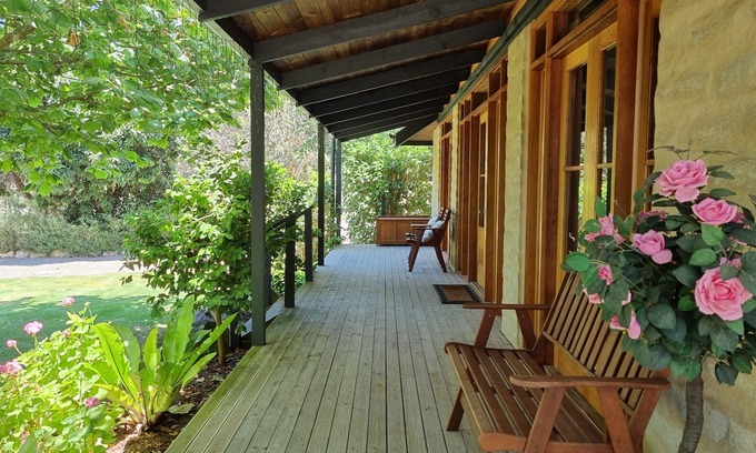 For bookings of up to 8, The Main Cottage is included in your tariff. For larger bookings of 9 or more, the Studio Cottage is also included in the tariff. There are beds for up to 10 guests & this is a comfortable number, however an extra 2 guests are able to be accommodated using the double sofa bed in the Studio or a basic fold out bed upstairs in bedroom 4 (suitable for a child) if required. Located on a large quarter-acre allotment of its own, The Cottage and The Studio can also be combined with 'The Villa’ on the additional property next door, sleeping up to 24 in total (please use the All 3 Properties listing if booking for all places).