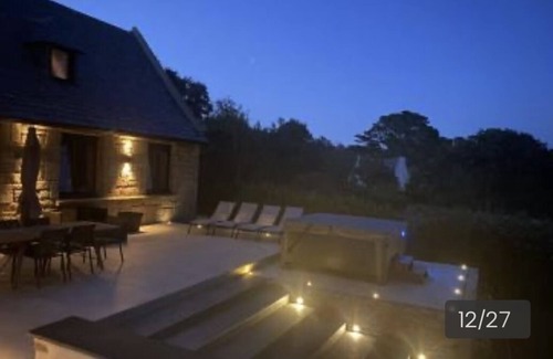 Seaside house with spa is located in Lanildut. Seaside house with spa provides accommodation, featuring Balcony/Terrace, Wellness Facilities, Barbecue/Outdoor Cooking, among other amenities. This House features Balcony/Terrace, Wellness Facilities, Barbecue/Outdoor Cooking, to make your stay a comfortable one.
