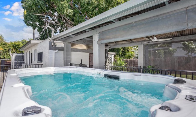 A 5-minute walk from Machans Beach in Machans Beach, Seaside Serenity Modern Cottage with Spa features accommodations with access to a hot tub and spa facilities. This property offers a private pool, free Wifi, and free private parking. Cairns Station is 6.9 miles from the vacation home and Cairns Convention Center is 7.2 miles away. Featuring a terrace and pool views, the spacious vacation home includes 2 bedrooms, a living room, flat-screen TV, an equipped kitchen, and 1 bathroom with a hot tub and a shower. Towels and bed linen are offered in the vacation home. The property has an outdoor dining area. Holloways Beach is a 11-minute walk from the vacation home, while Barron Beach is one mile from the property. Cairns Airport is 5 miles away.
