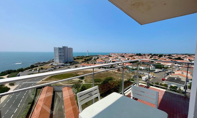 Studio in a residence facing the sea. The large beach of Les Sables d'Olonne is accessible by the ferryman 400m away in summer and a small equipped beach is 200m from the residence, as is a coastal path, starting point for beautiful walks on the edge from the sea. All shops at 700 meters and town center of Les Sables d'Olonne at 1900 meters. On the 9th floor with lift: entrance with cupboard, kitchen, living room with corner balcony offering an unobstructed view of the sea: 1 rapido of 140 and 1 BZ heater of 80 - Separate shower room and WC. Private garage.