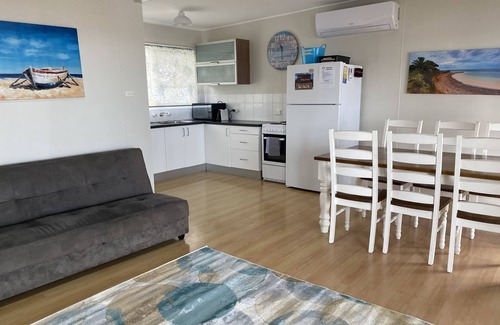 2 Story Holiday Rental to Relax or Plan those Fishing Trips. Sleeps up to 8 people with two bathrooms. Upstairs has Two Bedrooms (2 xQB), Bathroom, Toilet, Open Living Space with Kitchen, Lounge and Dining. Plasma TV, Reverse Cycle Air Conditioning. Leading from the open plan living is a huge undercover balcony with Sea Views, an 8 Seat Outdoor Entertaining Table.