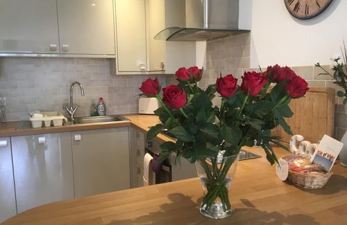 This is a New Apartment, with quality oak furniture, it has a Juliet balcony in lounge, and is open plan, with a well fitted kitchen.There is a fridge freezer, dishwasher, and washer dryer, All linen and towels are provided, but please bring your own beach towel.There is two bedrooms, one twin, with a fitted wardrobe, and shelves inside,for plenty of storage and the master bedroom,has a fitted wardrobe with shelves inside, it also has a en suite. There is a family bathroom, with a shower over the bath. Outside there is one allocated parking space, and also a bike shed. The Town is just a 5 min walk from the Apartment, also the beach, with Sandown pier, there are many restaurants, and a zoo, all in walking distance from the Apartment, so no need to take the car. Lots to see, and fun for all the family.