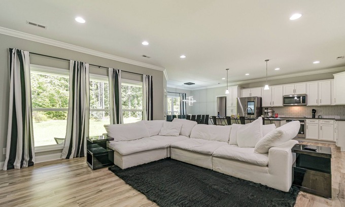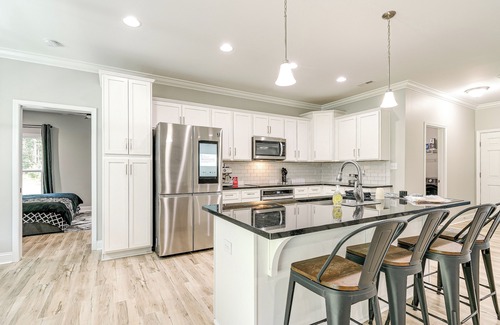 Make North Carolina yours at this Staley vacation rental! With 3 bedrooms, 2 baths, and 18 private acres, this home is a true sanctuary. Fire up the grills while the kids play pool or ping-pong in the garage, gather for meals and game nights in the open-concept living area, and go treasure hunting at the Liberty Antiques Festival in the spring or fall. Your stay in the pines is closer than you think — book now!