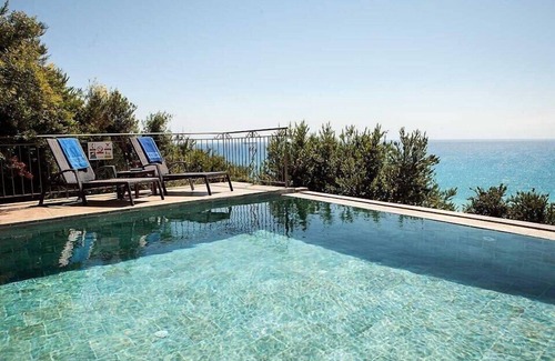 Villa Cottage is a delightfully secluded cottage with stunning views over Lourdas bay, perched directly above Lourdas beach within easy walking distance of the beach and beach front tavernas.