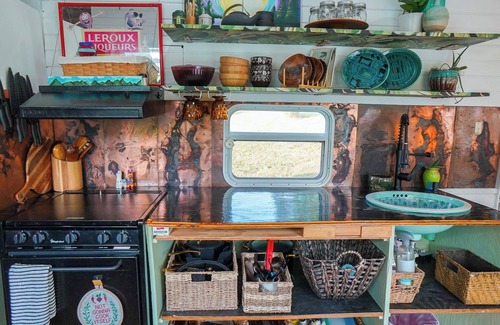 Experience the perfect blend of rustic charm and modern comfort in my 200 sq ft camper-to-tiny home conversion. Nestled in 15 acres on the edge of Louisville, this space offers a cozy interior with all the amenities you need. While the interior design style adds a quirky touch, everything else mirrors the conveniences of a regular home. Explore the yard, play games, and breathe in the open air. Your stay directly supports its growth and further transformation.