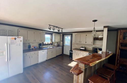 Come escape reality to a secluded cabin surrounded by nature. Reconnect with family, friends and wildlife. Take in the Blue ridge mountain views from the porch. A wrap around porch, half covered, is where most time will be cherished, rain or shine. We've provided a grill, and seating all around. Smoking is allowed outside on porch. Inside is cozy, with an open floor plan that makes for great family time. Gather around the fireplace for a nice selection of games, & movies; or cuddle up with a book from our library. Wifi is available. Two bedrooms each with queen beds. Couch pulls out to queen also, with memory foam Matress. Complimentary coffee bar. Double shower heads in the shower with a jacuzzi jet tub. Nice fire pit in feild out front..Pets are welcome. Enjoy our slice of Heaven out here on the edge of the world and your animals will too.