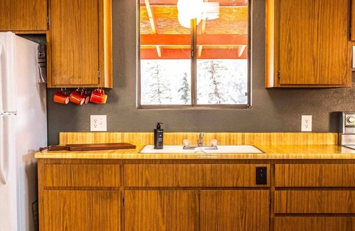 When it's time to eat, our upstairs kitchen has everything you need to feed everyone. A full oven and stove, microwave, and all the kitchen utensils and supplies you need. We also have a propane BBQ grill on the downstairs patio.