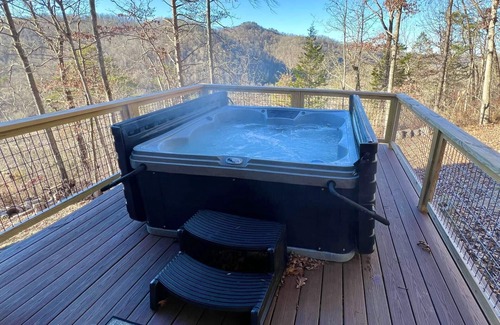 An exciting new addition to the rental program, this cabin continues to be improved and updated by the new cabin owners! Rental Property Accessed via a private driveway, the cabin is truly off on its own. From the lofted back deck views stretch out to either side down the valley below. Perched above Mountain Parkway, some highway noise is inevitable, but quickly fades into the background once you settle into the comforts of the cabin. A covered front porch also offers a relaxing place for a coffee in a rocking chair or porch swing. The New Hot Tub has room for everyone and has one of the best panoramic sunset views we have to offer.