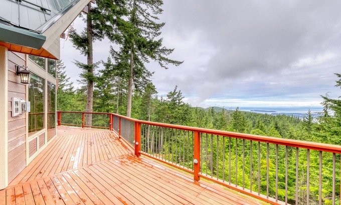 Secluded cabin with amazing water views, huge deck, fireplace, & jetted tub | House in Eastsound