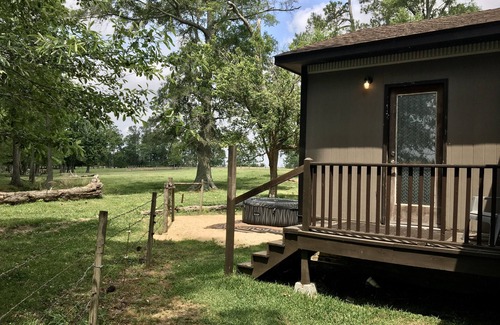 You've found the perfect place to escape to for peace, and to disconnect. There are plenty of places to explore on the property and natural springs all around. Feed the turtles or minnows in the shallow pond and creek, see fox squirrels, deer, foxes, armadillos, catch tree frogs, and hear the coyotes howl at night. There is even a bob cat that passes through the area regularly. Take a walk down the dirt/sandy field roads and collect arrow heads. Forage through the pasture, or along the fence line and find blackberry bushes, mulberry trees, mushrooms of all varieties, wild strawberries, citrons, honeysuckle, persimmon and pecan trees.