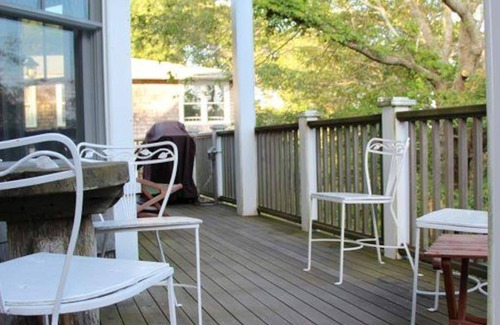 Heavily Wooded neighborhood with water view. 2 short blocks to the nearest beach. Long rugged driveway through the Bohemian Tasha hill artist's colony. The driveway is not elegant, the house is beautiful. On the property you are almost certain to see wild turkeys, rabbits, and foxes. Less frequently you may see coyotes and white tail deer. On edge of the East End gallery district. Restaurants and neighborhood shops within two blocks.