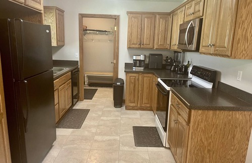 Our home has a full kitchen, stocked with plenty of pots/pans/utensils/plates/etc. All you need to bring is your food - we have everything else.