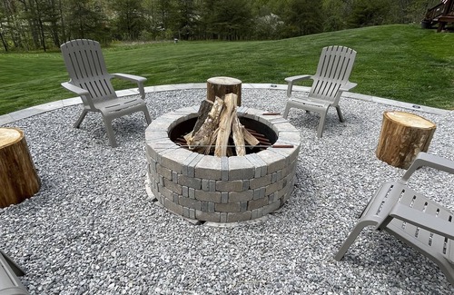 Beautiful, large fire pit with plenty of seating for warm fires and lots of s’mores.