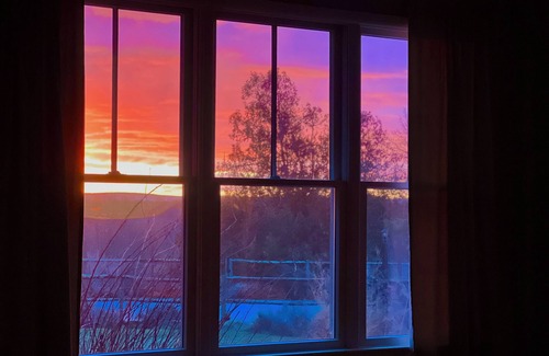 This two-bedroom main house (with a third bedroom in the neighboring guest/pool house) is a renovated ranch featuring a sun-soaked farmhouse style eat-in kitchen, fully stocked for cooking family meals, with a cozy living space graced with large windows overlooking the property, a massive primary bedroom with views of the sunrise over the mountains from bed, a spa-like jacuzzi in the private bath, and a new-construction barn with pool and ping-pong tables.