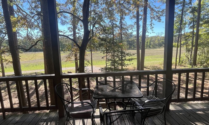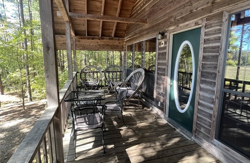 Secluded, peaceful cabin with walking trails & stocked ponds in SE Oklahoma is located in Pickens. Secluded, peaceful cabin with walking trails & stocked ponds in SE Oklahoma provides accommodation, featuring Air Conditioner, TV, Balcony/Terrace, among other amenities. This House features Air Conditioner, TV, Balcony/Terrace, to make your stay a comfortable one.
