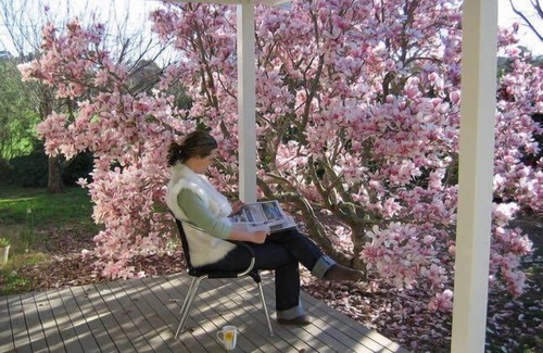 The garden is a delight..... rambling and vigorously energized... lively, fresh and teeming with wild birds and animals. Over 35 species of native birds flitting about have been counted during the annual bird count ~ they are all calm in our presence In spring they bring their newly fledged offspring to show off and discover the territory !!