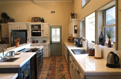 Our Lavender Hill Farm house is perfect for family reunions, ladies retreats, birthdays and more! We are situated on 11 acres with a 4 acre fishing pond and the farmhouse is surrounded by beautiful gardens featuring many roses bushes and lavender. We have a swimming pool, fire pit, 2 paddle boats, 2 kayaks and outdoor games, including a volleyball net, basketball and horseshoes. The grounds include a large vegetable garden, fruit trees and grapevines. Guests are welcome to pick vegetables and herbs, including mint, basil, oregano, thyme and parsley from our garden (seasonal) and we will provide fresh eggs from our chickens which are located on the other side of the pond. Guests may also be able to sample our homemade wine and salsa when available. The house is secluded but on the adjacent property is our managers house and he is available to help with any special needs. Canton First Monday Trade Days in Canton is an easy 20 minute drive as are the towns of Mabank and Terrell. We are about 30 minutes away from three large lakes, but you won't want to leave our house!