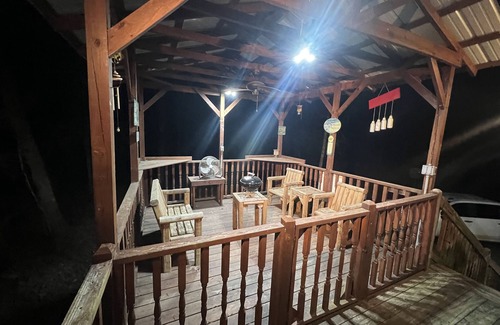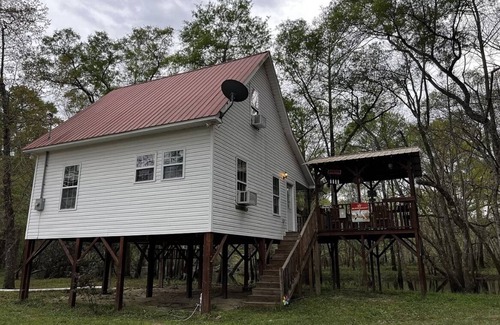 Secluded riverfront cabin perfect for friends and family to have fun. Bring your UTV to ride the dirt road, bring fishing poles to go fishing and kayaks so you can kayak down the river. Plenty of room to play games and grill out. The cabin has 2 bedrooms with 3 beds. 1 queen size downstairs, 1 queen size upstairs and 1 full size upstairs. The cabin will sleep 6 people. The house sits on stilts so there are a set of stairs to access the cabin and then stairs to access the upstairs of the cabin. The cabin is at the end of a 2 mile adventurous dirt road and requires a four wheel drive vehicle.