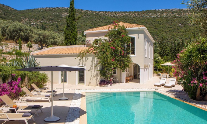 Villa Amadeus is for everyone who is looking for 100% complete relaxation and the highest luxury in every detail! This comfortable 4 bedroom villa with two ensuite bathrooms, one shared bathroom, one WC in the living room area and one shower inside the hammam, is located in the heart of nature , located in Poros, Lefkada. The comfortable Villa Amadeus offers a beautiful relaxing view over the Sea and the lush green mountains. The villa offers complete seclusion and provides a total escape from the outside world. It's a hidden gem with uninterrupted 360-degree views of the sea and surrounding nature. Despite its unique location, the villa has a strong Wi-Fi signal that's suitable for streaming videos and making video calls.