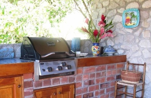 Keywords: two-bedrooms, bathrooms en suite, four-poster beds; large terrace, outdoor/indoor kitchen (barbeque), large pool and pool house in one acre of secluded tropical gardens..