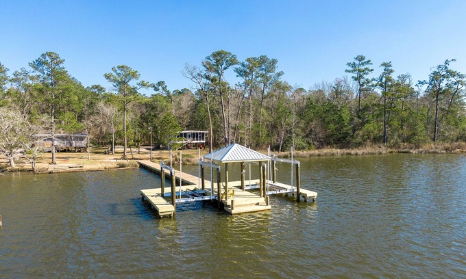 Secluded waterfront fishing cabin, boat dock, pier, sunsets, boat to beach is located in Foley. Secluded waterfront fishing cabin, boat dock, pier, sunsets, boat to beach provides accommodation, featuring Pet Friendly, Balcony/Terrace, Sports/Activities, among other amenities. This Cabin features Pet Friendly, Balcony/Terrace, Sports/Activities, to make your stay a comfortable one.