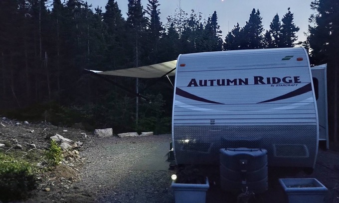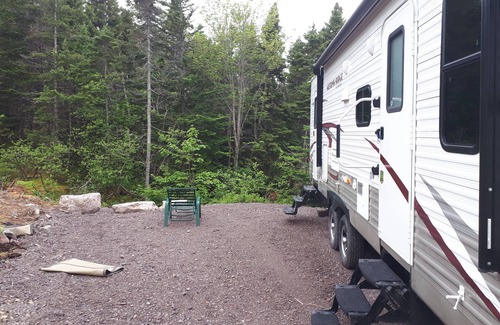 The RV is surrounded by spruce forest, and a babbling brook runs past. Follow the brook to the salt water just 150 metres away! Our property is 3 minutes from The View Golf Resort, 20 minutes from Trinity and 45 minutes from Bonavista.