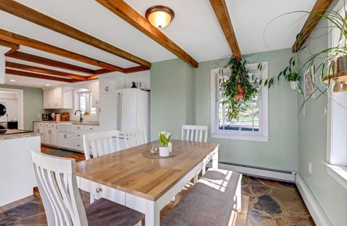 Originally built in 1844 as a one room school house, the home was renovated in 2020 while still including many of the original features such as big stone walls, Stone dining room floor, and much more, now resembles a unique farm style home.