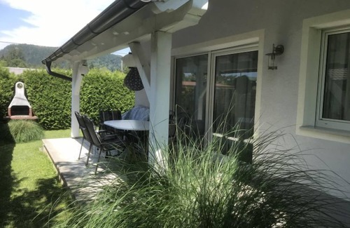 Child friendly, modern single-family house "Seehaus Blue Faak", 2 storeys. 1 km from the centre, in a sunny position, traffic calmed area, 40 m from the lake, in a cul-de-sac. Private: property 250 m2 (fenced), lawn for sunbathing. Barbecue. In the house: WiFi, storage room for bicycles, storage room for skis, ski boot dryer. Parking (for 2 cars) at the house. Supermarket 2 km, shopping centre 10 km, restaurant 300 m, bar 900 m, bicycle rental 900 m, bus stop 250 m, railway station "Faak am See" 1.7 km, thermal baths "Villach - Warmbad" 8 km, public bathing area 50 m, lake Faaker See 40 m. Sports harbour 1.2 km, golf course (18 hole) 8 km, surf school 3.5 km, sailing school 3.5 km, tennis 5 km, cycle lane 30 m, gondola lift 15 km, skisport facilities 15 km, cross country ski track 13 km. Nearby attractions: Tierpark Rosegg 8 km, Affenberg Burg Landskron mit Adlerwarte 8 km, Casino Velden 10 km, Dreiländereck 26 km, Mölltaler Gletscher 95 km. Well-known ski regions can easily be reached: Gerlitzen 15 km, Nassfeld Tröpolach 60 km, Bad Kleinkirchheim 44 km. Well-known lakes can easily be reached: Wörthersee. Hiking paths: Mittagskogel Karawanken 5 km. The house is located near the lawns of the residents on the edge of the lake. The house includes a license for electric boats.