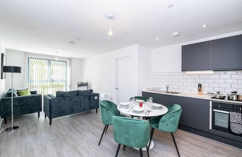 This two-bedroom self catering accommodation Manchester is on the second floor of a new development on Talbot Road. Within walking distance of a well-served tram stop for easy access to Manchester city centre, and also close to the UA92 and Old Trafford cricket ground.