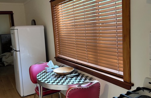 Located on a very quiet street, and nestled in the trees, this suite is perfect for a couple and 1 child, or 3 adults. It has a fold out couch in the living room. Comes with a full bath including tub and shower, and a full kitchen. Has high speed internet and cable tv. The suite has everything you need except food to stay comfortably for a few days or weeks. Also a private deck and BBQ, chairs and a small table.